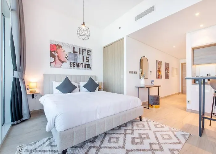 Апартаменты Funky Studio Dubai Marina Outstanding Facilities с бассейном расположились в 6 минутах пешей прогулки от мечети Аль-Рахим. Гости могут пользоваться Wi-Fi.